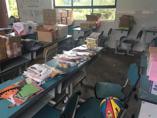 下午3时,23位万向学子忙碌地整理第二天上课所需要的物资,本次支教团为学生准备了近千本书,大量的文具,练习本,生活用品等,这些物资不仅仅是书本和文具,更是万向集团及万向师生对孩子们满满的爱,希望这些物资能够陪伴孩子们学习成长。