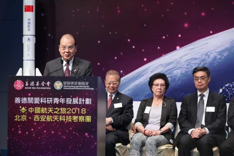 7月14日,梦想航天,情系中华—2018北京、西安航天科技考察团举行启动典礼在香港会展中心举行,中央政府驻港联络办副主任谭铁牛、特区政府政务司司长张建宗莅临主礼。