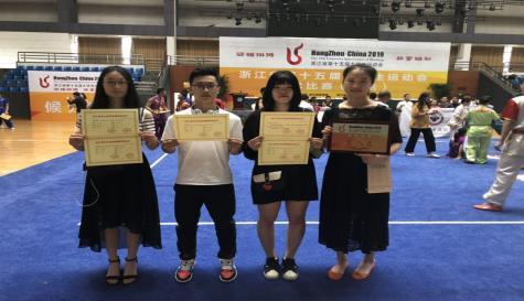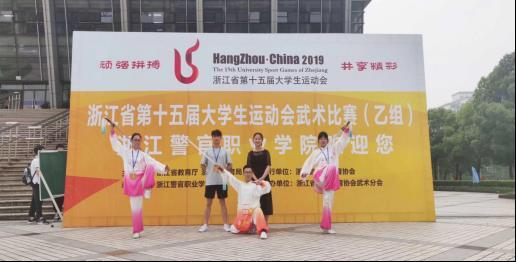 近日,浙江省第十五届大学生运动会武术比赛在浙江警官职业技术学院落下帷幕,我院代表队获女子团体第八名、自选棍术第四名、自选拳术第六名、42式太极剑第七名和第八名的良好成绩。 其中,团体成绩为我院首次在历届大运会比赛中晋级八强。