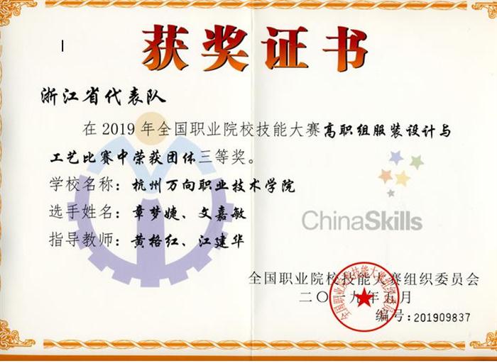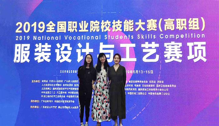 近日,2019年全国职业院校技能大赛服装设计与工艺赛项(高职组)在广东职业技术学院隆重举行。我院教师江建华、黄格红带领服装设计与工艺16-2班文嘉敏、18-3班章梦婕2位同学与全国29个省、自治区、直辖市74所高职院校148名选手同台竞技,努力拼搏,再获团体三等奖。