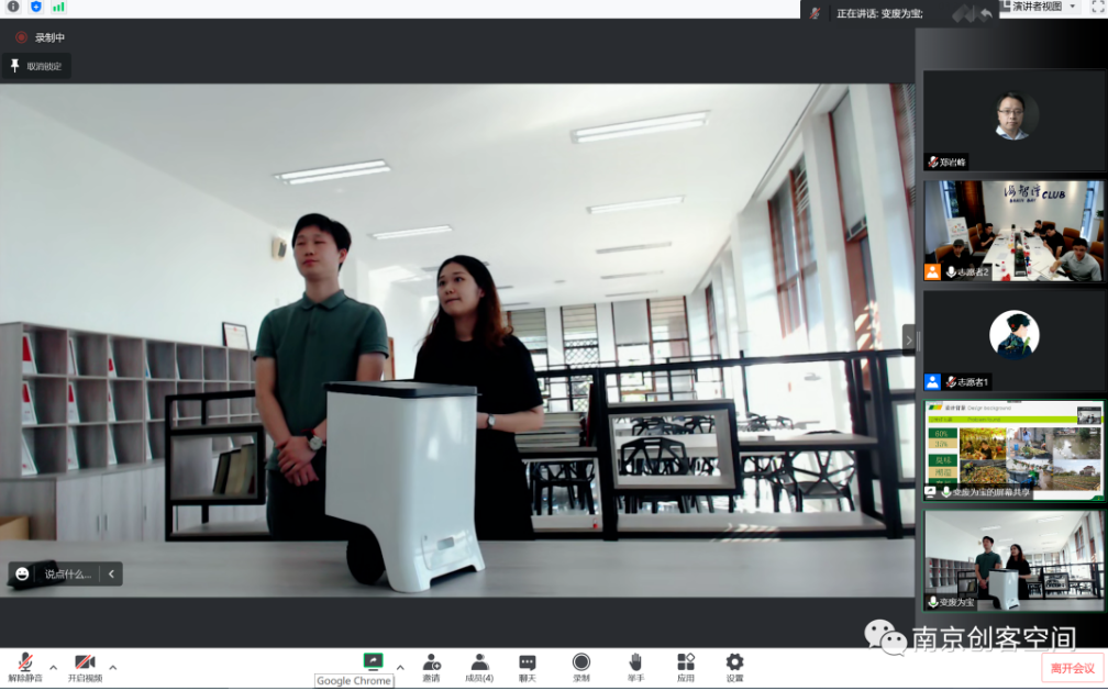 今年南京赛区竞争异常激烈,共有71所高校183支团队报名参赛,其中中美联队6支,参赛人员近900人,参赛高校数量和联队数量创历史新高。我院7个团队报名参加南京赛区的比赛,其中3支队伍成功实现中美联合组队,“十万强”项目美国合作方芝加哥大学的在校学生Kelly Zhang和Summer Liu,“十万强”项目的校友Trevor Roe参与项目合作,并多次进行线上项目研讨。最终“变废为宝”团队成为22支入围南京赛区决赛的团队之一。入围分赛区决赛后,团队对比赛项目进行了认真打磨,精心准备路演答辩环节,在决赛中团队新颖实用的产品设计、稳定出色的路演表现得到了评委的认可,在众多竞争团队中脱颖而出,成为赛区唯一一个拿到总决赛入场券的中美联合队,将与赛区其他5个获奖团队一起参加8月份举行的全国总决赛。
